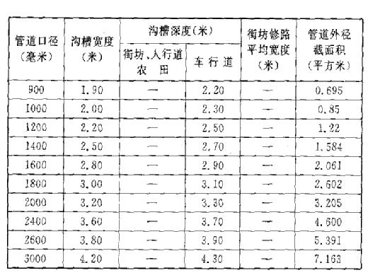 四、埋管沟槽及铸铁管道外径截面积可参照下表计算。