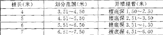 八、槽型钢板桩桩长划分及适用沟槽深度规定如下表: