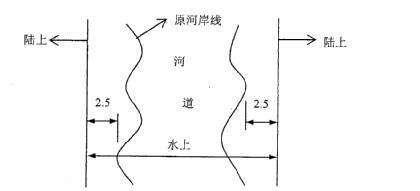 水上工作平台:凡从河道原有河岸线向陆地延伸2 . 5m 范围(见下图),均属水上工作平台。
