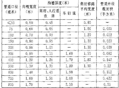 四、埋管沟槽及铸铁管道外径截面积可参照下表计算。