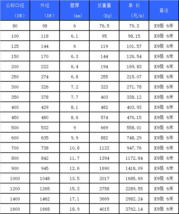 球墨铸铁管市场价 球墨铸铁管件2017年市场价 球墨铸铁管件按8710元/吨进行计算,加工件的加工费另计 附件球墨铸铁管件市场价.xlsx文档更新时间: 2022-06-20 11:48 作者:phjapple